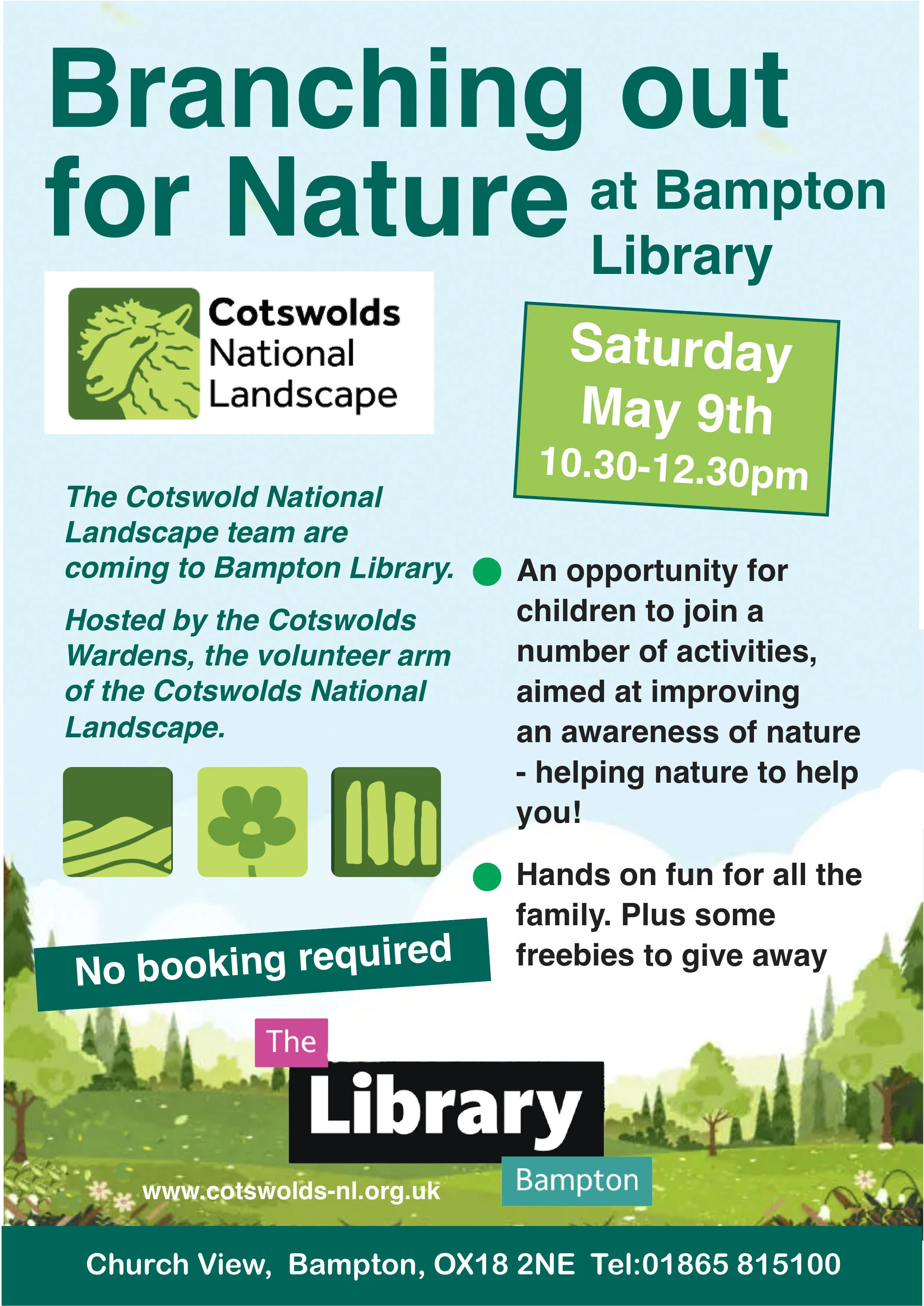 The Cotswold National Landscape team are coming to Bampton Library. Hosted by the Cotswolds Wardens, the volunteer arm of the Cotswolds National Landscape