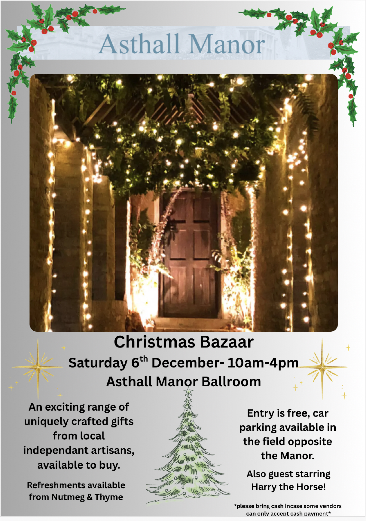 CHRISTMAS BAZAAR AT ASTHALL MANOR BALLROOM Saturday 6th December 10am – 4pm