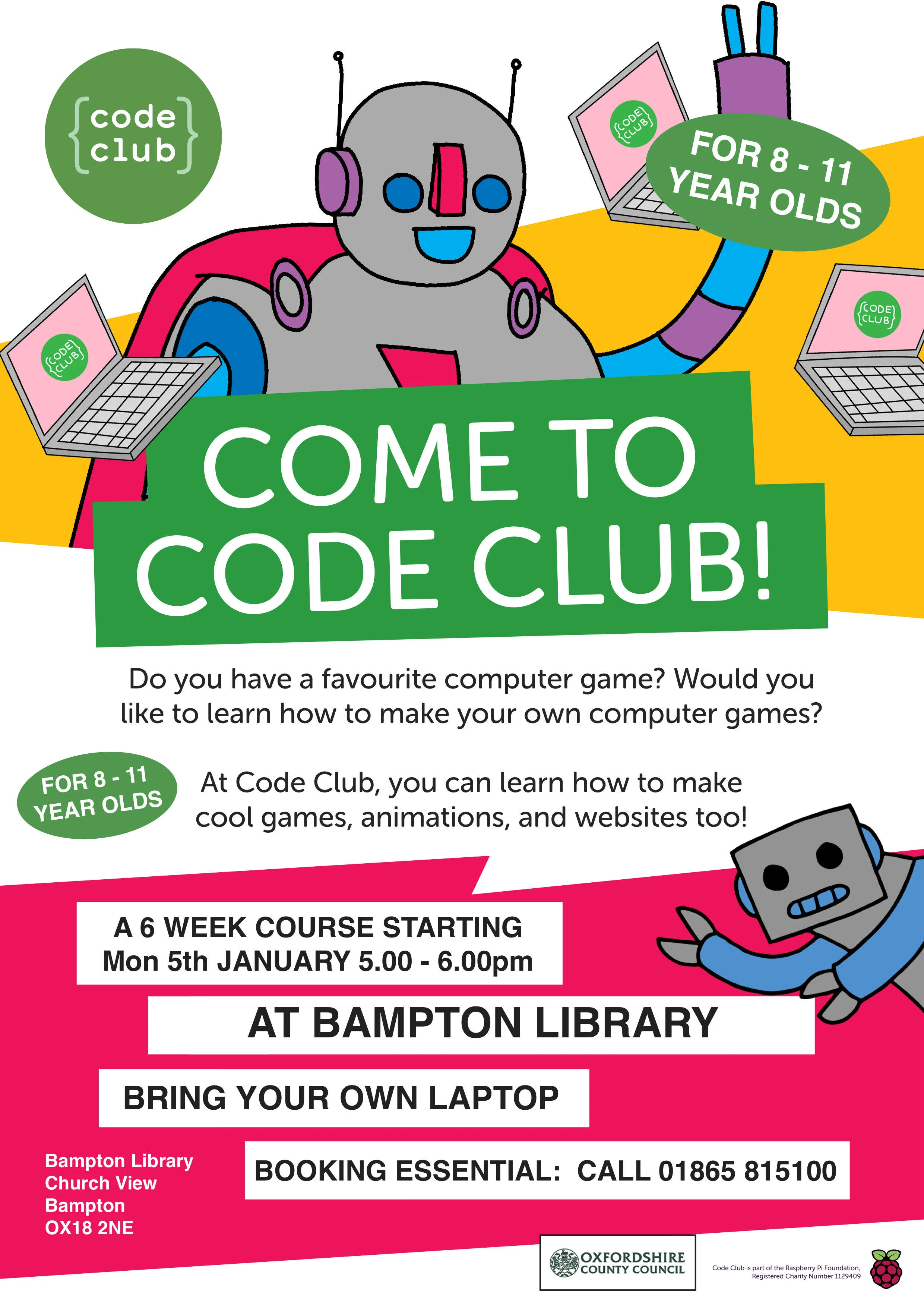 CODE CLUB AT BAMPTON LIBRARY FOR 8 – 11 YEAR OLDS