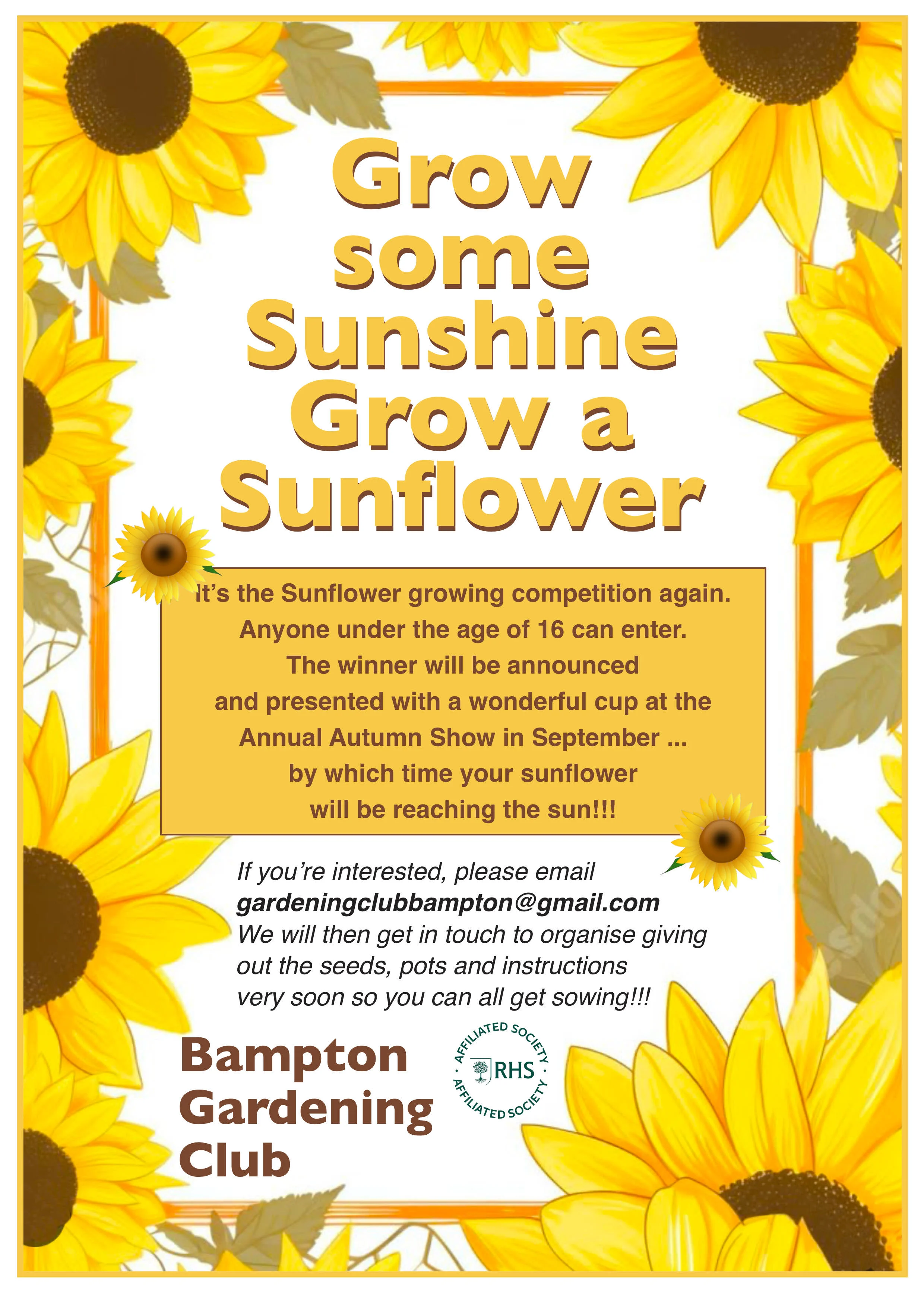 It’s the Sunflower growing competition again. Bampton Gardening Club have opened their Sunflower Competition.
