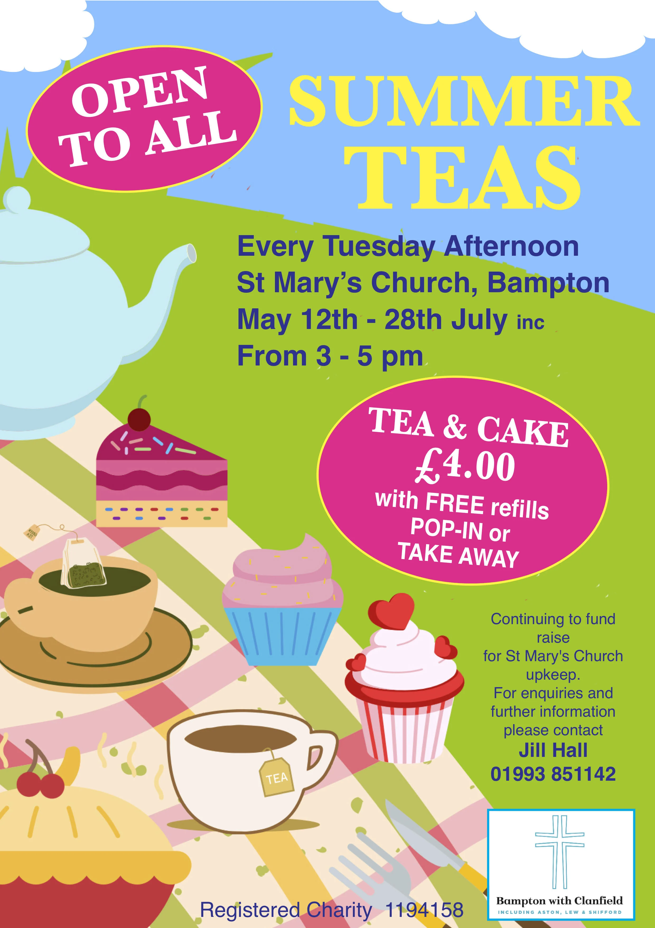 Continuing to fund raise for St Mary’s Church upkeep. For enquiries and further information please contact Jill Hall 01993 851142