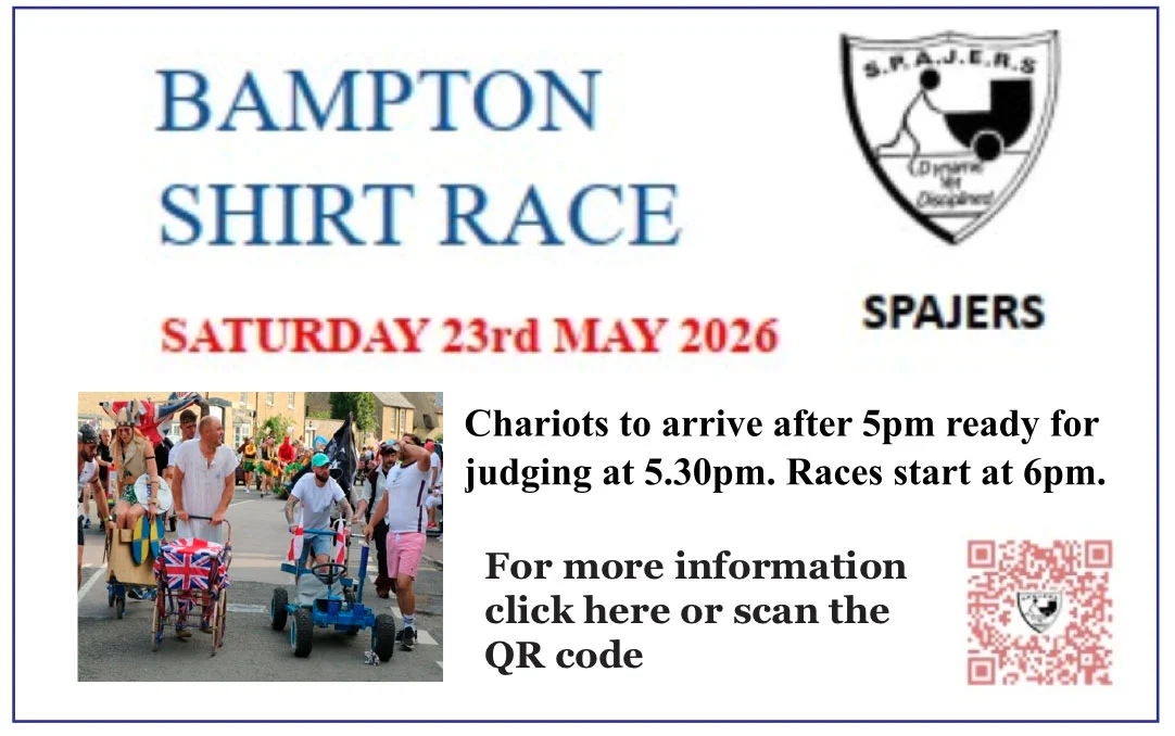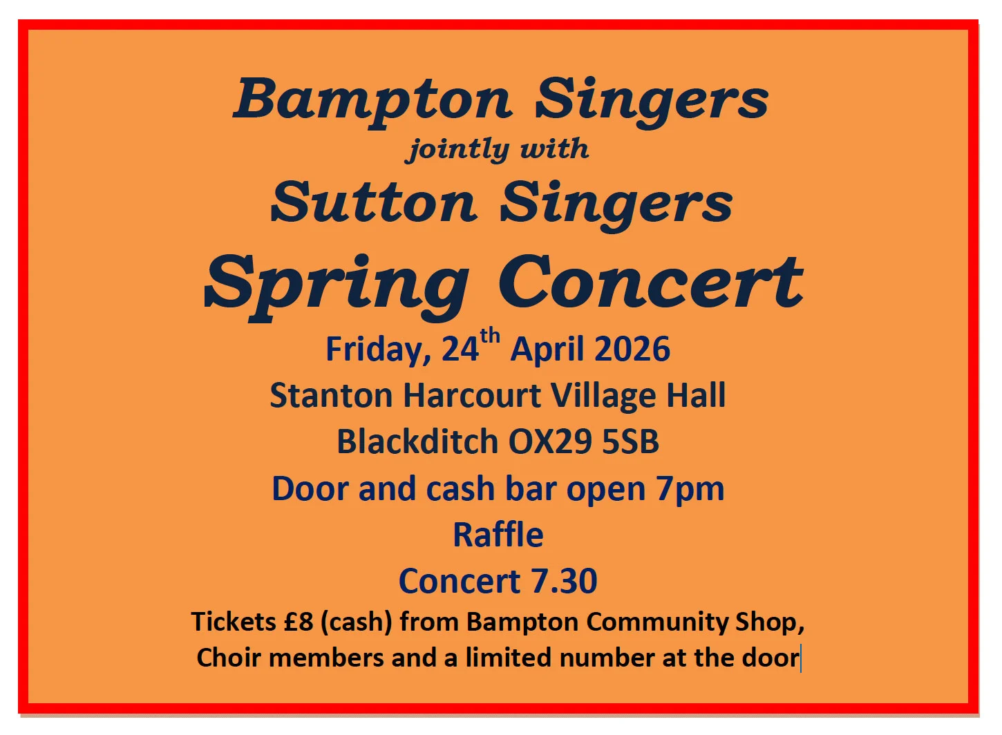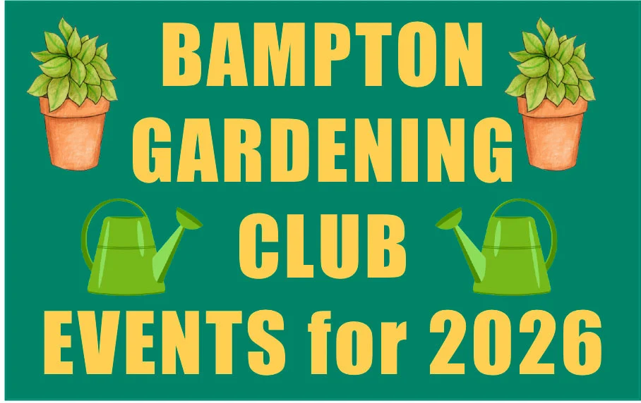 Bampton Community Hub Events DON’T MISS 30th Mar – 3rd Oct BAMPTON GARDENING CLUB EVENTS CALENDAR 2026 All events 10th Apr EASTER CRAFTING AT BAMPTON LIBRARY – MAKE A WOLLY SHEEP WREATH 18th Apr CLIVE CARROLL LIVE AT ASTON POTTERY 21st Mar – 18th Apr WOA Exhibition – Portals of Gnosis Paintings by Anita Joice 24th Apr Bampton Singers with Sutton Singers – Spring Concert 14th May SCAMS AWARENESS TALK – BAMPTON LIBRARY THURSDAY 14th MAY 23rd May SPAJERS BAMPTON SHIRT RACE 2026 9th Feb – 13th Jul SCRABBLE CLUB AT BAMPTON LIBRARY 15th Jan – 16th Jul JOIN US FOR COFFEE & COMPANY AT BAMPTON LIBRARY 23rd Apr – 23rd Jul BLOKES AND A BREW AT BAMPTON LIBRARY 25th Apr – 30th Jul BAMPTON THEATRE CLUB SUMMER PROGRAMME 2026 26th Sep BAMPTON BARN DABCE 2026 – SAVE THE DATE 30th Mar – 3rd Oct BAMPTON GARDENING CLUB EVENTS CALENDAR 2026 26th Jan – 23rd Nov FREE GADGET AND IT SUPPORT SESSIONS AT BAMPTON LIBRARY 5th Feb – 3rd Dec Interested in your Family History? BOOK YOUR FREE HELP SESSION TODAY at Bampton Library 10th Jan – 12th Dec FREE LEGO CLUB AT BAMPTON LIBRARY 7th Jan – 16th Dec UNDER 5’s RHYME TIME AT BAMPTON LIBRARY